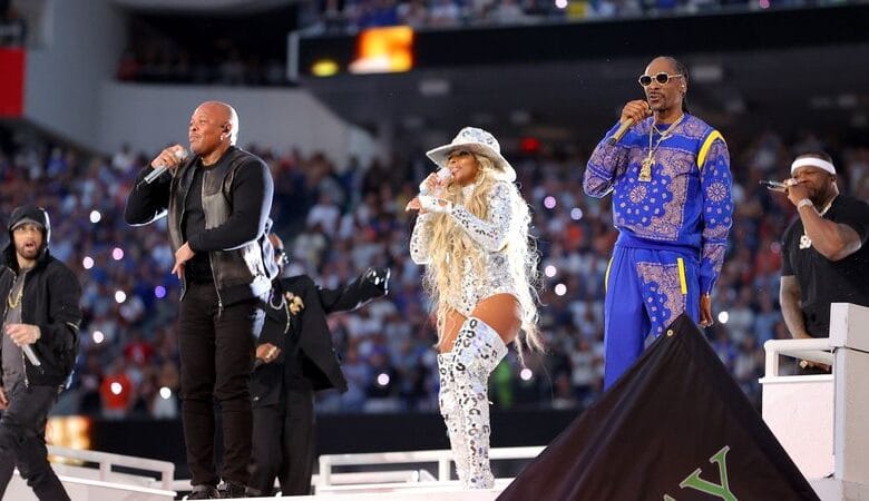 Pouco depois das 22h, na metade da partida entre os Cincinnati Bengals e os Los Angeles Rams, Dr. Dre, Snoop Dogg, Eminem, Mary J. Blige e Kendrick Lamar entregaram o que já era anunciado desde que foram escalados –uma apresentação histórica, que certamente entrará para a lista de mais simbólicas já feitas nos jogos.