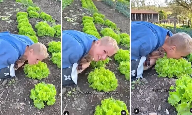 Xuxa posta vídeo comendo alface diretamente do pé: ‘Vegano raiz’